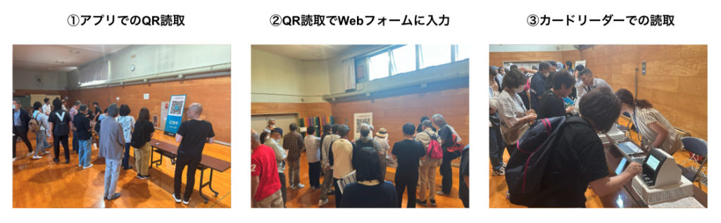 実施内容:最大震度6強の地震発生を想定し、バカンが提供する「避難所マネジメントシステム」を使用し、避難所入所受付の従来の紙の避難者カードへの記入を、アプリ※やマイナンバーカードリーダー、WEBフォームへの入力によってデジタル化し、デジタル技術を活用した避難所受付のメリットについて体験し、理解を深めるとともに、避難所マネジメントシステムへの住民・職員からのフィードバックを得ることを目的に実施。