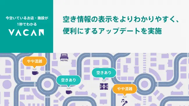 いま空いている店舗・施設が地図上でわかる「VACAN Maps」 ピンの表示形式がよりわかりやすく、便利になります